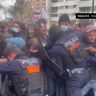 Les policiers aspergent à bout portant de gel lacrymogène poivre les manifestants dans les yeux.