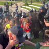 Violent coup de pied par un gendarme sur un homme assis, incapacité par les gaz lacrymogènes.